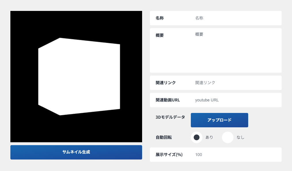 展示アイテムの「3Dモデル」画面から登録します。