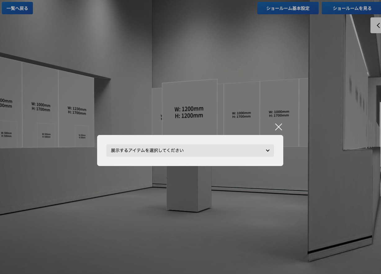 展示サイズ(%):ショールーム内で表示するサイズを%で指定します。